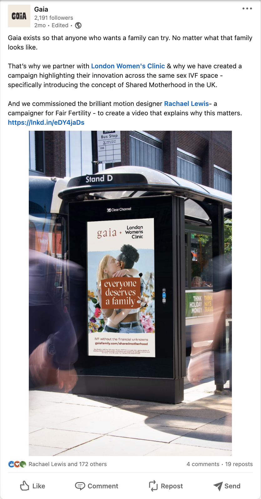 I was teamed up with Rachael Lewis, a brilliant motion designer and fair fertility campaigner herself, who created this beautiful campaign, which I wrote the video copy, OOH assets and social posts for.